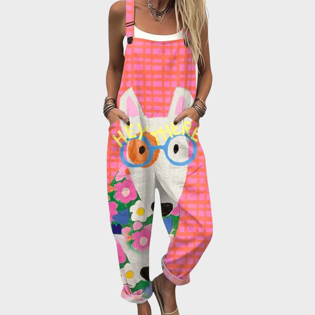 Този летен гащеризон съчетава комфорт и уникален дизайн в парче облекло, което ще обожавате да носите всеки ден. С широк крой, практични джобове и игриви детайли, той е перфектен за разходки, излети или релаксиращи моменти у дома.