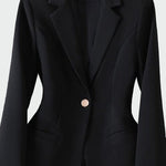 Вечен сако с елегантен крой, който подчертава женствеността и стила. Едно копче отпред добавя финес, докато чистите линии на джобовете засилват минималистичния характер. Идеално за бизнес поводи, но и за елегантни вечерни излизания.