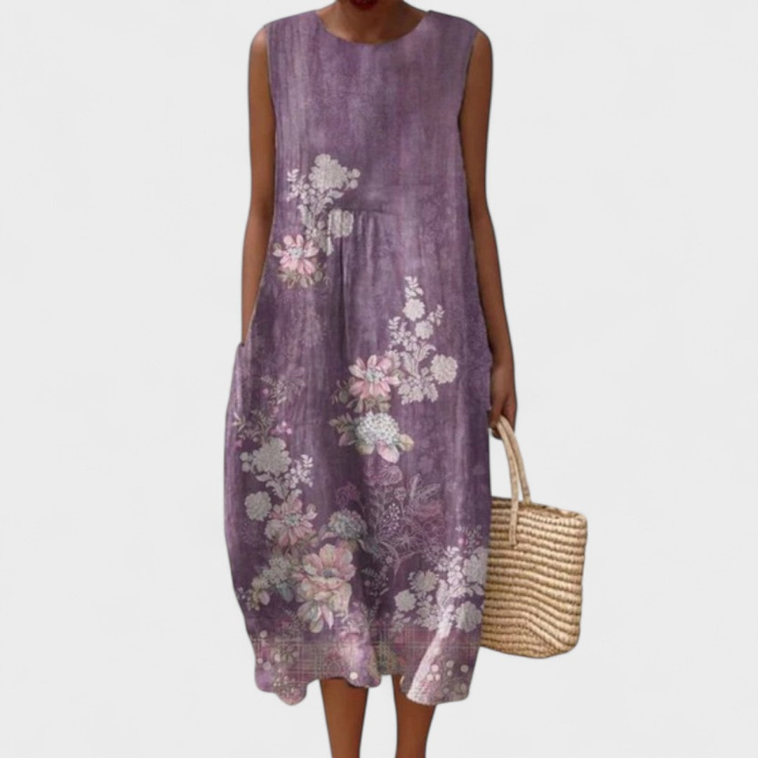 Тази лека и въздушна рокля перфектно комбинира стил и практичност, предоставяйки ви свобода на движение и изискан вид на всякакви поводи. Нейният свободен крой и цветен десен я правят идеален избор за плажа, разходка из града или летни срещи.