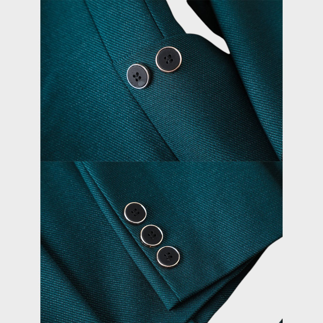 Този сложен комплект от две елегантни компоненти – сако и панталони – представлява перфектната комбинация от стил и професионализъм. С класическия си крой, който подчертава линията на тялото и практичните детайли, този комплект е идеален за бизнес срещи, формални събития или вечерни излизания. Вечният дизайн позволява лесно комбиниране с различни модни аксесоари.