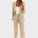 Този изискан костюм е изработен с акцент на прецизен кроя и перфектно адаптирана силуета. Сакото и панталоните в перфектна хармония предлагат елегантен вид, който излъчва самочувствие и стил. Независимо дали става въпрос за бизнес срещи, специални поводи или ежедневни предизвикателства, този комплект предоставя идеален баланс между модерен дизайн и класическа елегантност.