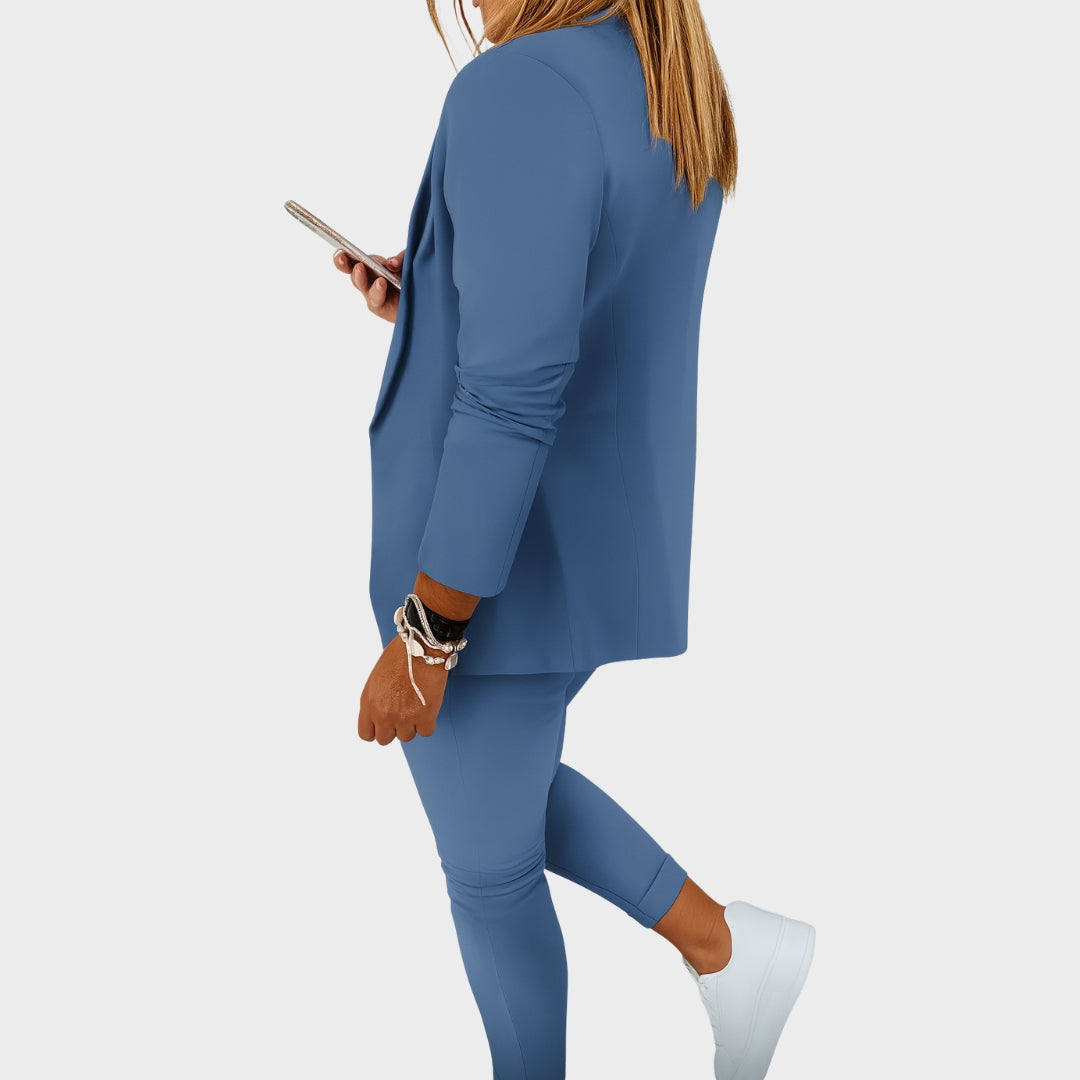 Този комплект съчетава вечен дизайн с висококачествени материали, предлагащ комфортен, универсален вид, който оставя добро впечатление. Лесен е за комбиниране и се адаптира към различни поводи.