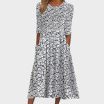 Тази прекрасна синьо-бяла миди рокля с нежния цветен узор е идеалната комбинация от удобство и стил. Благодарение на въздушния материал и женствения крой, тя осигурява свобода на движенията и лесно се носи през целия ден. Джобовете отстрани добавят практичност, докато елегантният узор подчертава свежестта и изтънчеността във всяка ситуация.