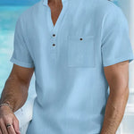 Идеална за разходка по морския бряг или вечеря на покрива, тази риза въплъщава елегантност във всеки детайл.