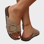 Тези сандали предлагат перфектен баланс между удобство и изисканост. С модерен дизайн и елегантна закопчалка, те са перфектният избор за вас, които искате елегантен вид без компромиси с удобството. Меката подметка осигурява, че всяка стъпка е лека и естествена, което ги прави идеални за ежедневието и релаксиращи излети. Независимо дали искате да допълните своя аутфит или да добавите щрих чар към стила си, тези сандали са незаменим избор.
