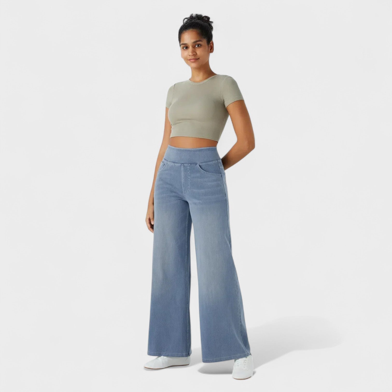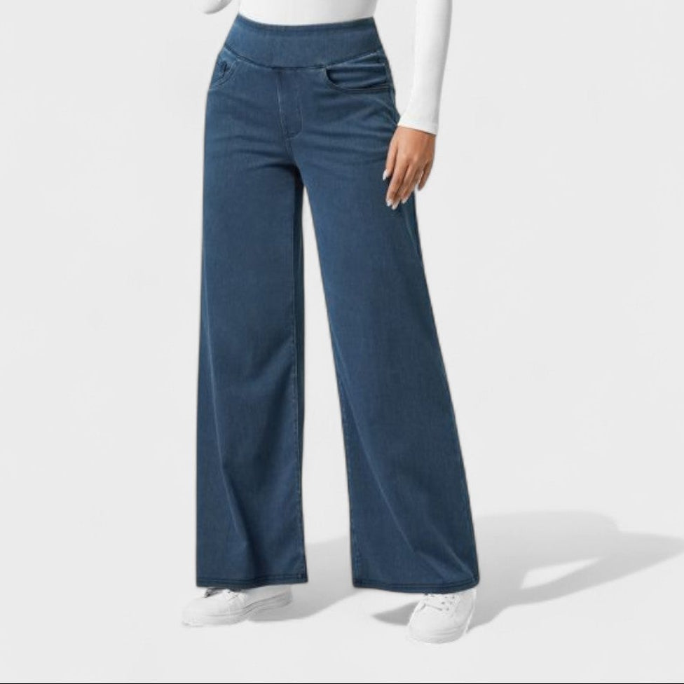 Открийте перфектния баланс между удобство и елегантност с дънковите панталони Клара. Дизайнът с широки крачоли удължава силуета, без да жертва удобството, идеални за активни жени, които искат да изглеждат добре всеки ден.