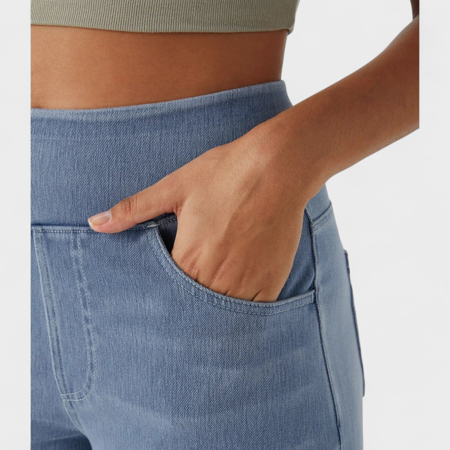 • Висока и широка талия, която се оформя без стягане