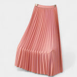 Импозантна и ефирна, тази плисирана пола с високата талия и широкия крой представлява изявен моден елемент за всяка гардероб. Идеална за стилни визии от сутрин до вечер, тя комбинира движение, елегантност и вечен характер.