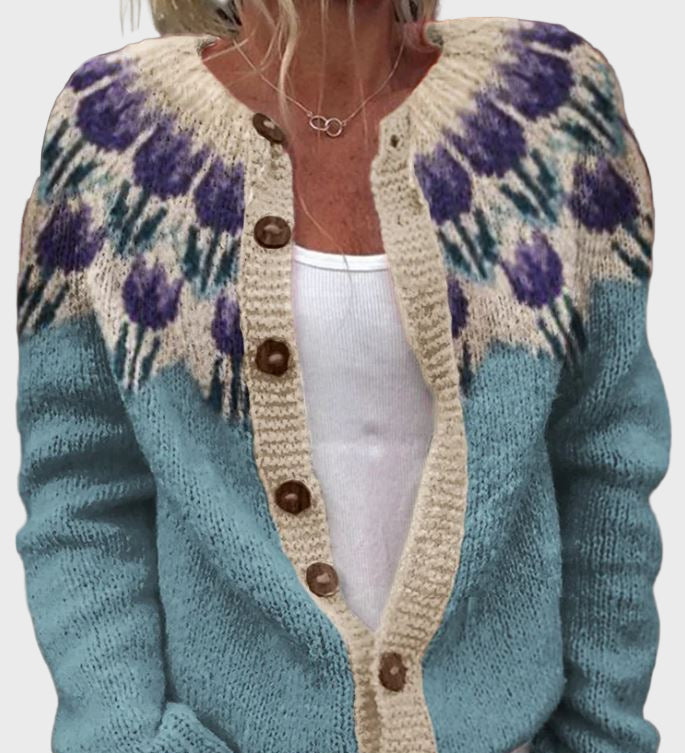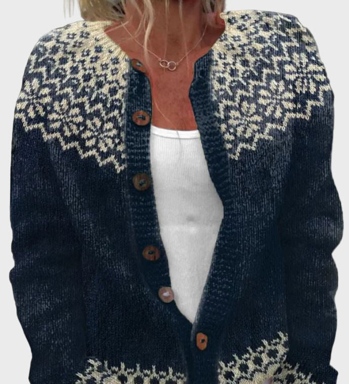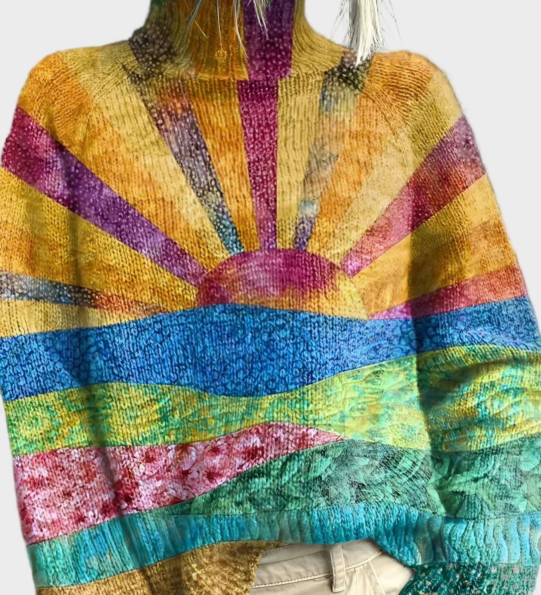 Плетен Пуловер с Висок Вратник и Специален Узор