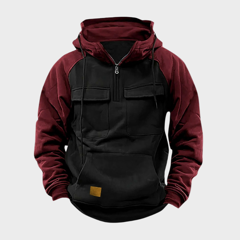 Тази стилна спортно-ежедневна блуза с качулка комбинира функционалност и комфорт в изключителен дизайн. Изработена от висококачествени материали, тя предлага топлина, издръжливост и лекота при движение. Практичните джобове с цип и удобната кройка я правят идеалния избор както за активното ежедневие, така и за по-спокойни уикенд дни.