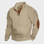 Този мъжки плетен пуловер е вдъхновен от традиционната изработка и създаден за модерния мъж, който държи на качеството и уюта. Фината текстура и изразените релефни мотиви придават изискан вид, а меката материя осигурява комфорт през целия ден. Яката с копчета позволява да променяте визията според случая – от небрежна до по-елегантна. Укрепените лакти добавят характер и издръжливост, което прави този модел идеален за студените дни и вечери.