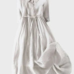 Тази нежна синя рокля излъчва спокойствие и елегантност, идеална за всякакви поводи. Нейният прост силует осигурява комфорт и вечен стил, докато коланът в талията придава женствена фигура с естествено падане на тъканта.