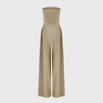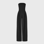 Този изискан гащеризон без презрамки е перфектната комбинация от съвременна елегантност и комфорт. С женствен силует, който подчертава фигурата, и широки крачоли, които осигуряват плавно движение, той е идеален избор за вечерни излизания, тържествени поводи или специални моменти, когато искате да оставите силно впечатление. Дискретните джобове добавят практичност, без да нарушават блясъка.