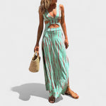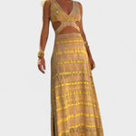 С стратегически резки и свободен модел, тази дълга рокля е перфектният израз на свобода и стил. Идеална за слънчеви дни, фестивали, излети на море или вечерни срещи, лесно се адаптира към най-непринудените моменти, без да губи елегантния си вид.