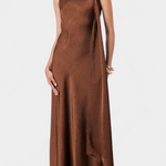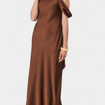 Драгица Асиметрична Дълга Рокля в Бронзов Цвят