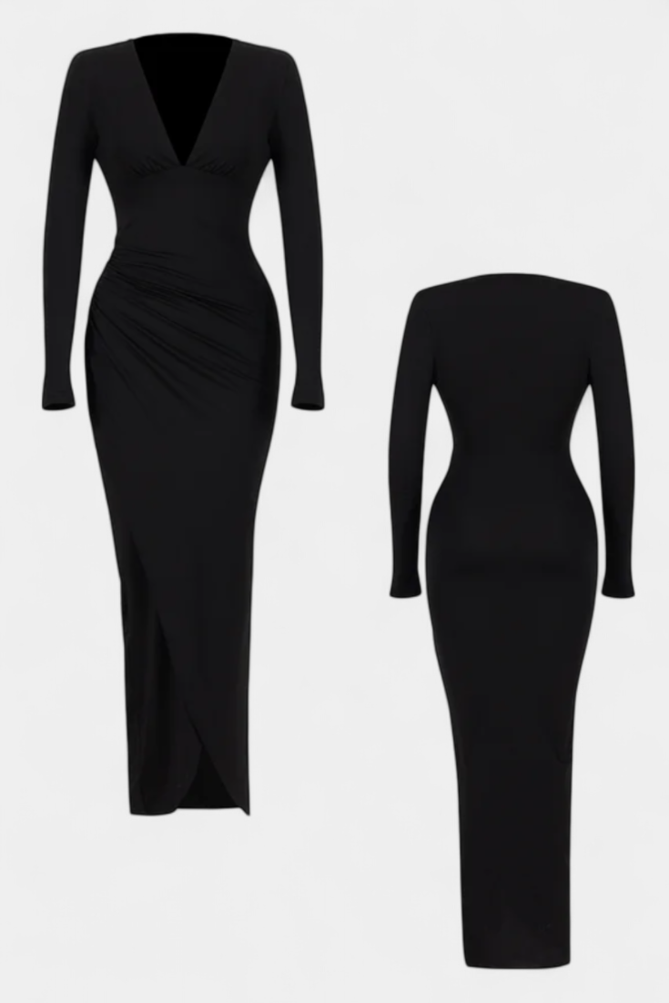 Елена Рокля с Дълги Ръкави и Дълбоко V Деколте