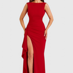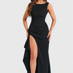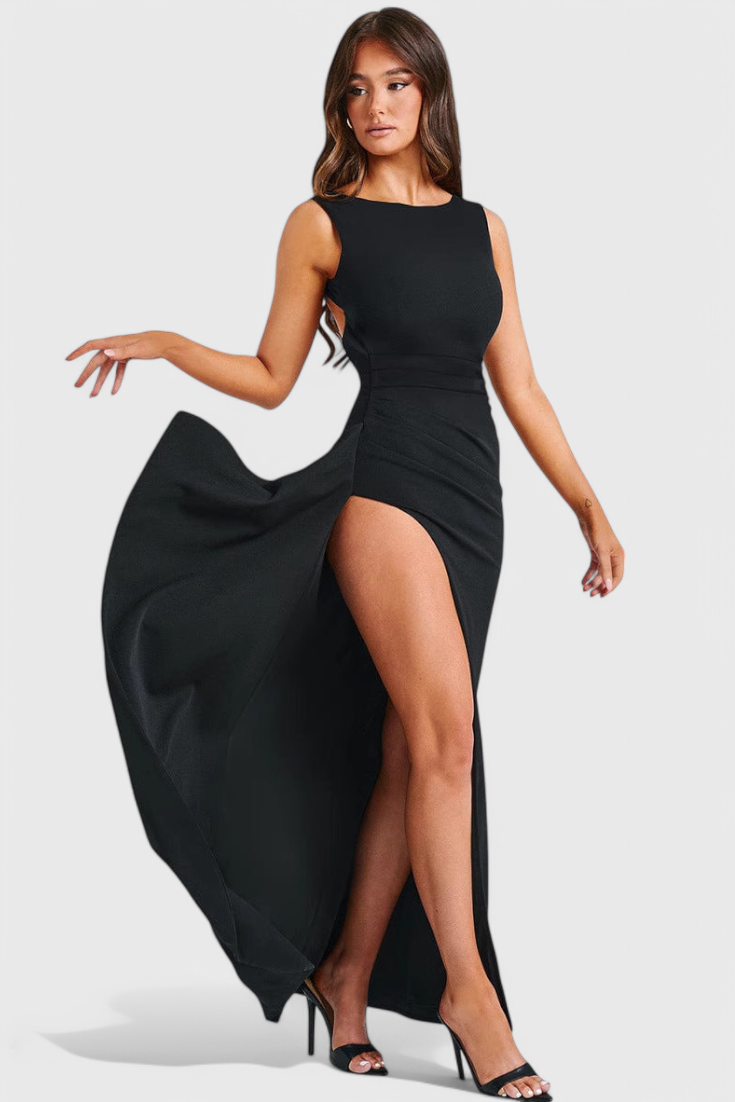 Създадена да очарова, Вечерната Рокля Ивана представлява сложна елегантност. С тясната си силуета, луксозно сатенено покритие и драматичен открит гръб, тази рокля е с пълна дължина и е перфектният избор за излизане. Високият разрез добавя движение и привлекателност, правейки я идеална за гала събития, формални вечери и моменти на червения килим.