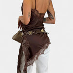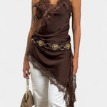 • Асиметричен подгъв с интракатна дантела, която добавя романтика
