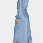 Женска, елегантна и с изтънчен стил, роклята Мария комбинира флуидна макси силуета с структурирана висока яка и пола с цветни детайли. Нейният дизайн е идеален за тези, които искат да подчертаятSophisticated в специални поводи, без да се отказват от комфорта.