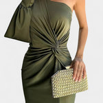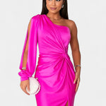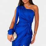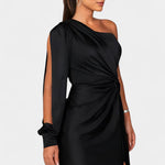 Габриела Асиметрична Рокля с Драпиране на Едно Рамо