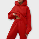 Този комплект с oversized суичър и панталони с висока талия е перфектната дефиниция на удобството със стил. Идеален за дни на релаксация, пътувания или онзи небрежен street look, съчетава модерен вид с удобството, което търсите. Меката текстура и съвременният кройка превръщат основното в съществено.