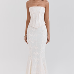 Елегантна и женствена рокля с корсет, която подчертава силуета и предлага неустоима елегантност. Персонализираният крой подчертава извивките, докато дантелени детайли добавят романтика и лукс. Идеална за сватби, официални събития и уникални вечери.