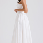Елегантна цветна рокля, която подчертава женствеността с романтичен нюанс. Пригоденият корсет с вертикални шевове акцентира на силуета, докато широката пола осигурява комфорт и движение. Идеална за пролетни и летни поводи, от ежедневни разходки до елегантни покани.